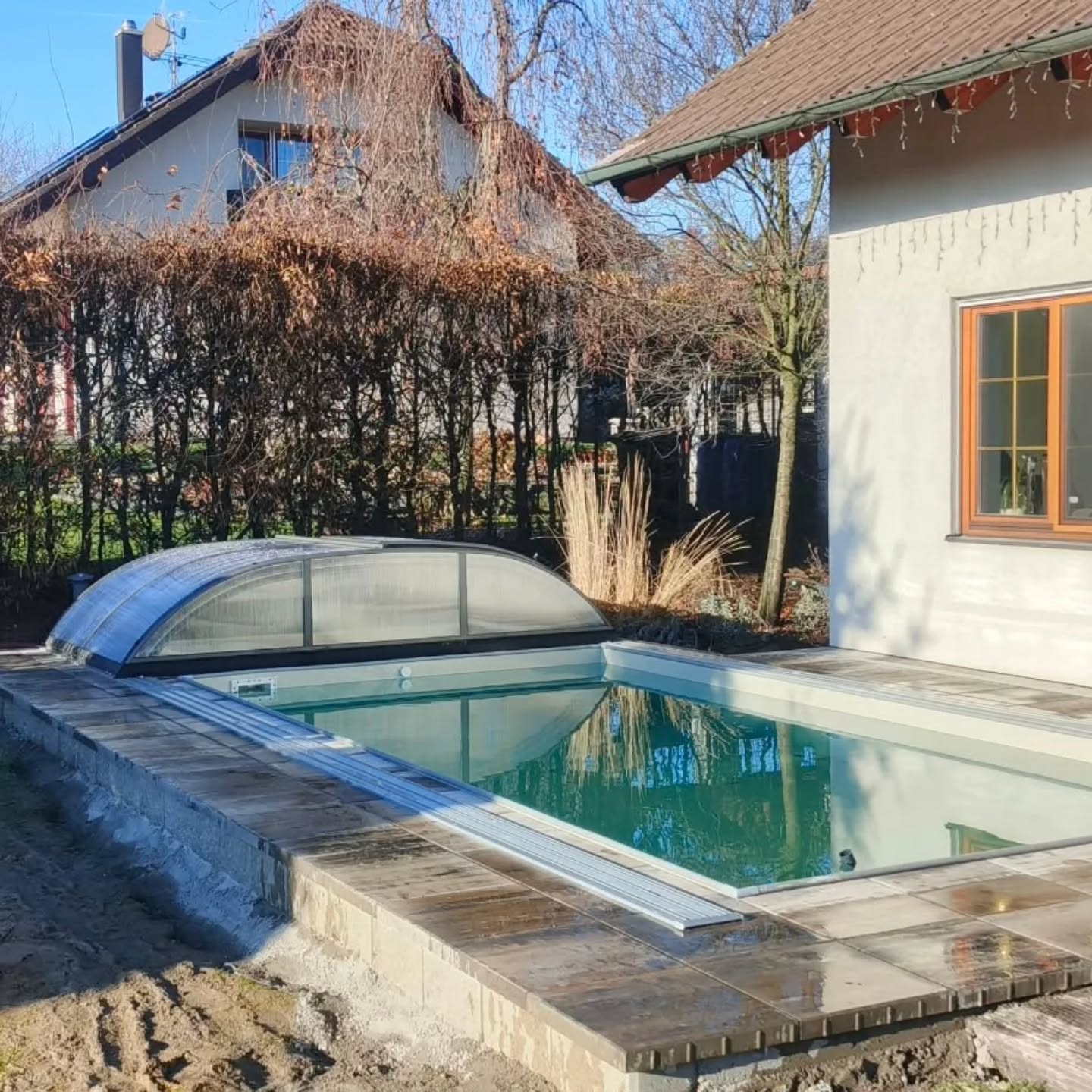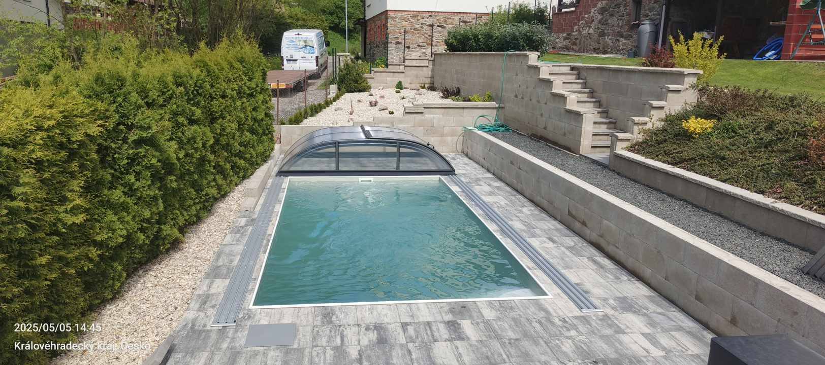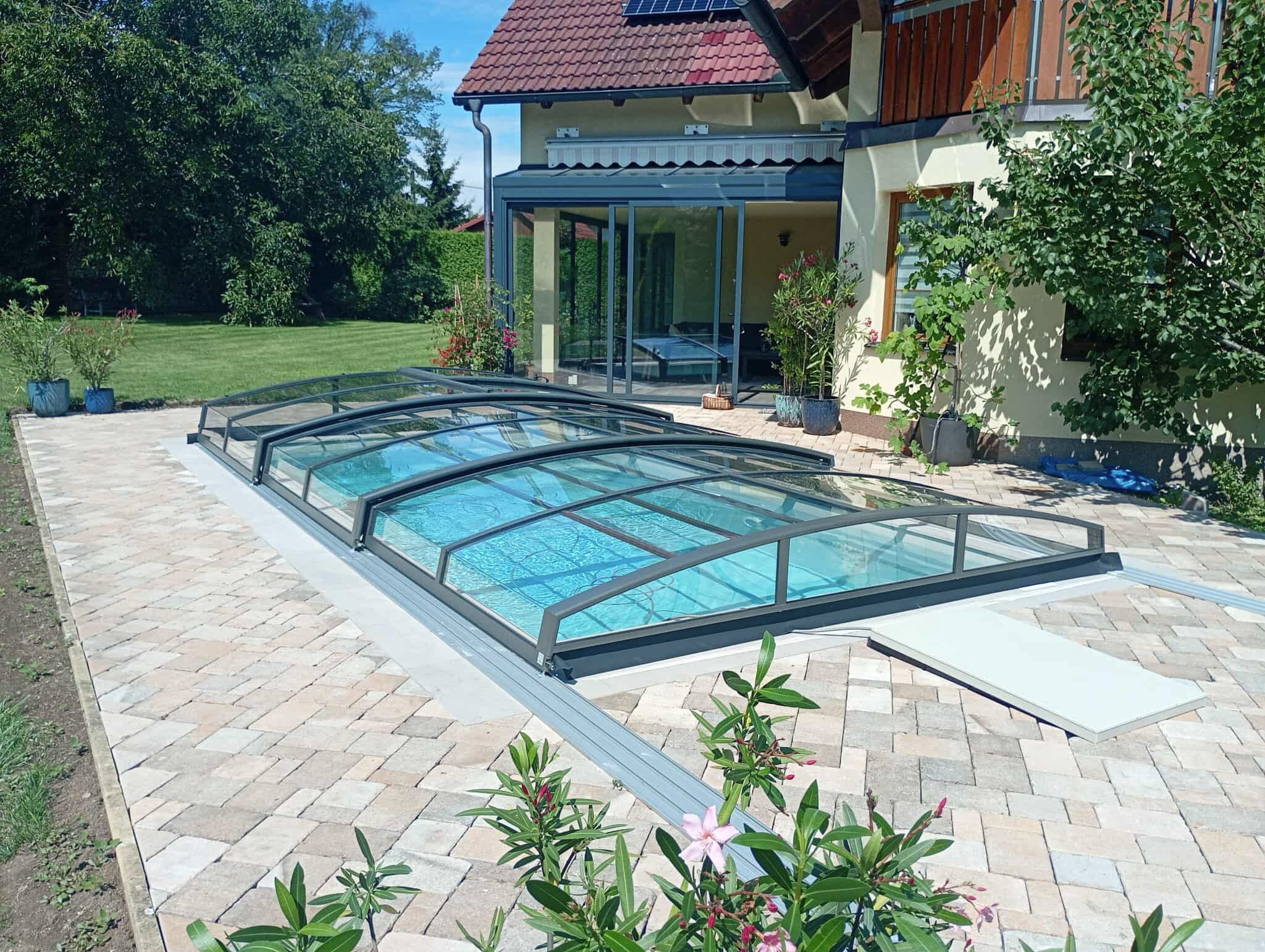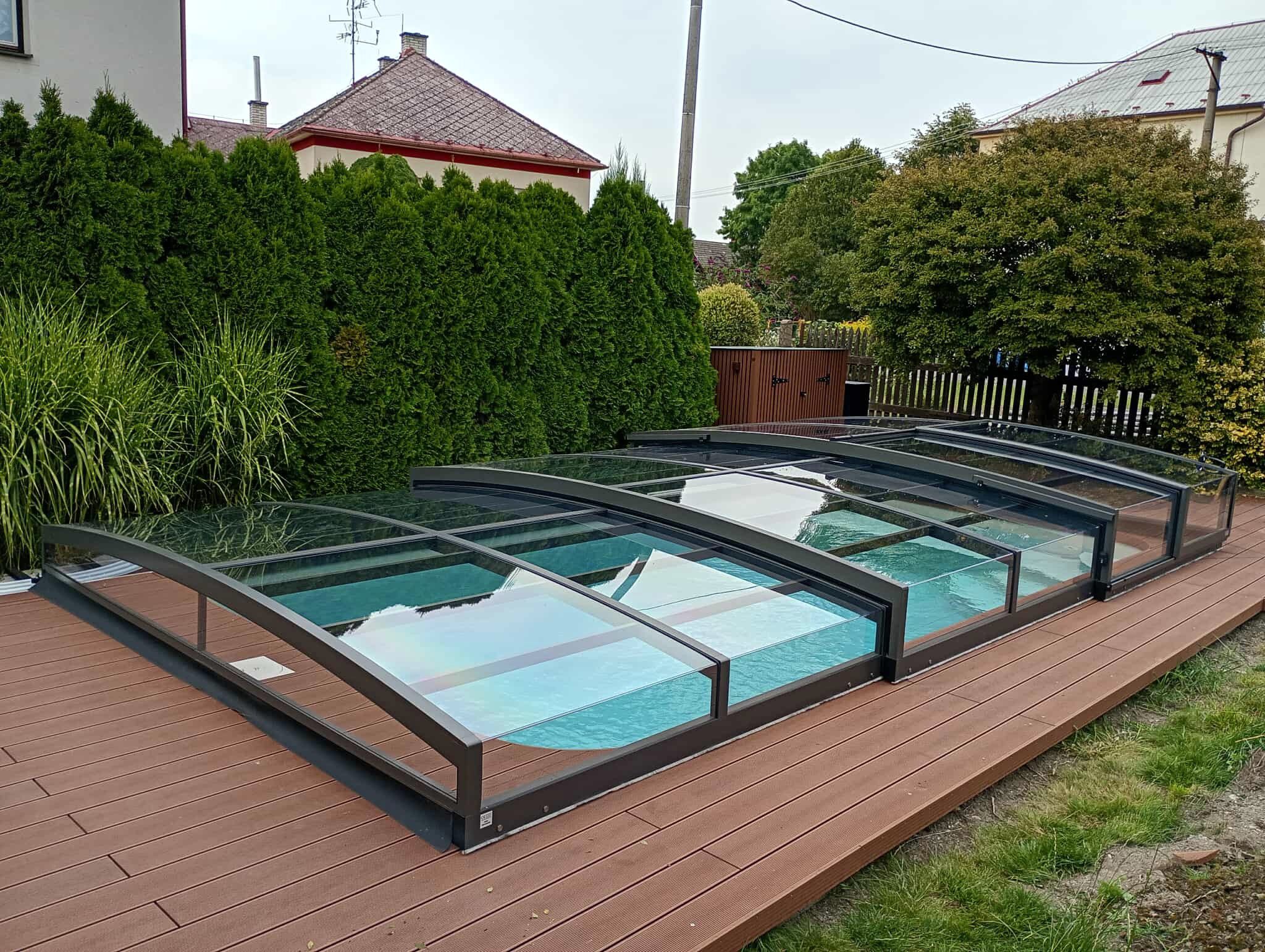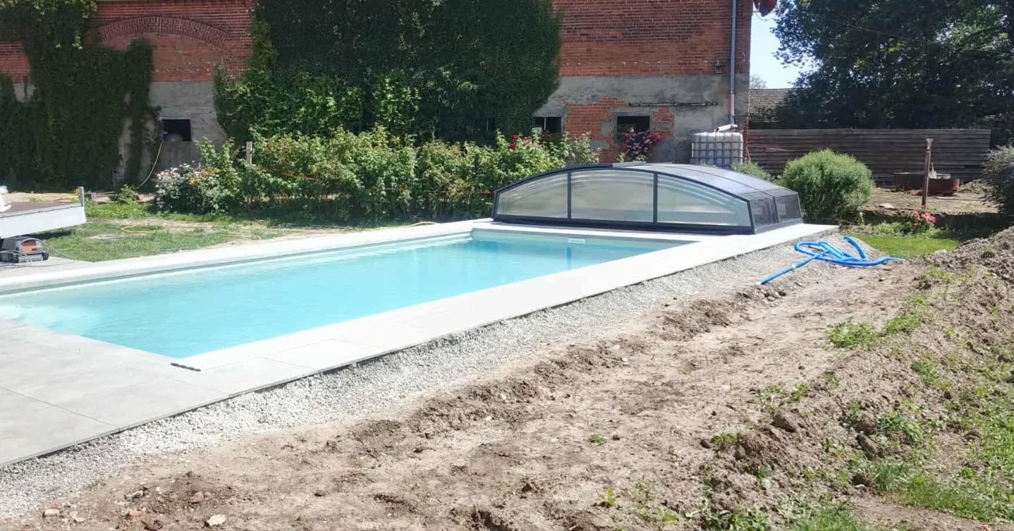 Rekonstrukce bazénu 6x3x1,5 m, zastřešení AZURE ANGLE