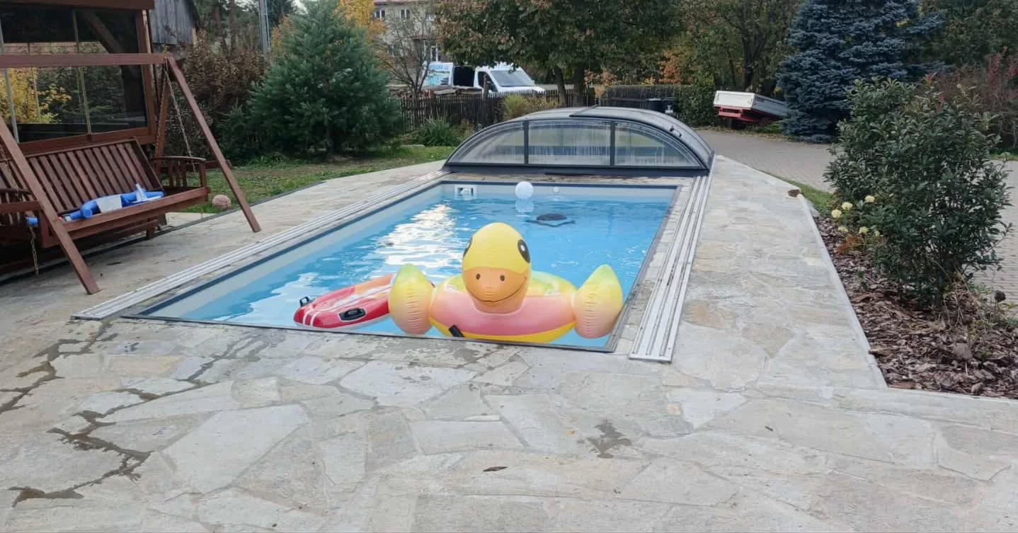 Rekonstrukce bazénu ovál 5,7x2,7x1,5 m, zastřešení AZURE FLAT